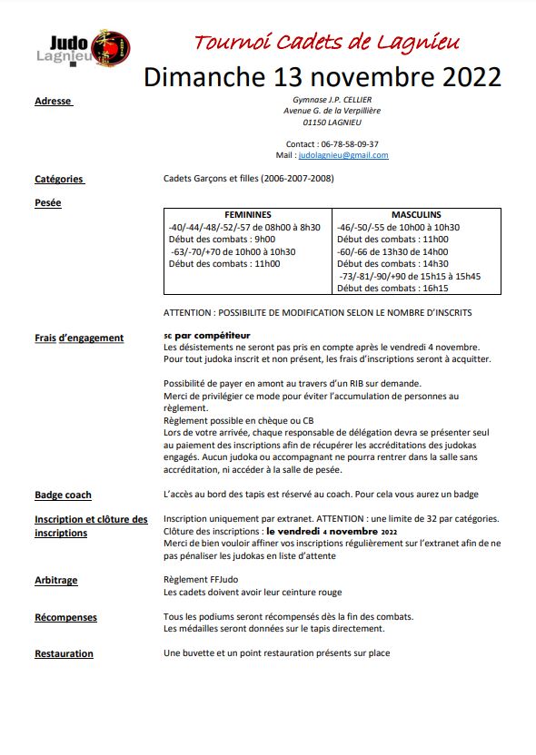 Tournoi cadet Lagnieu. 13 novembre 2022