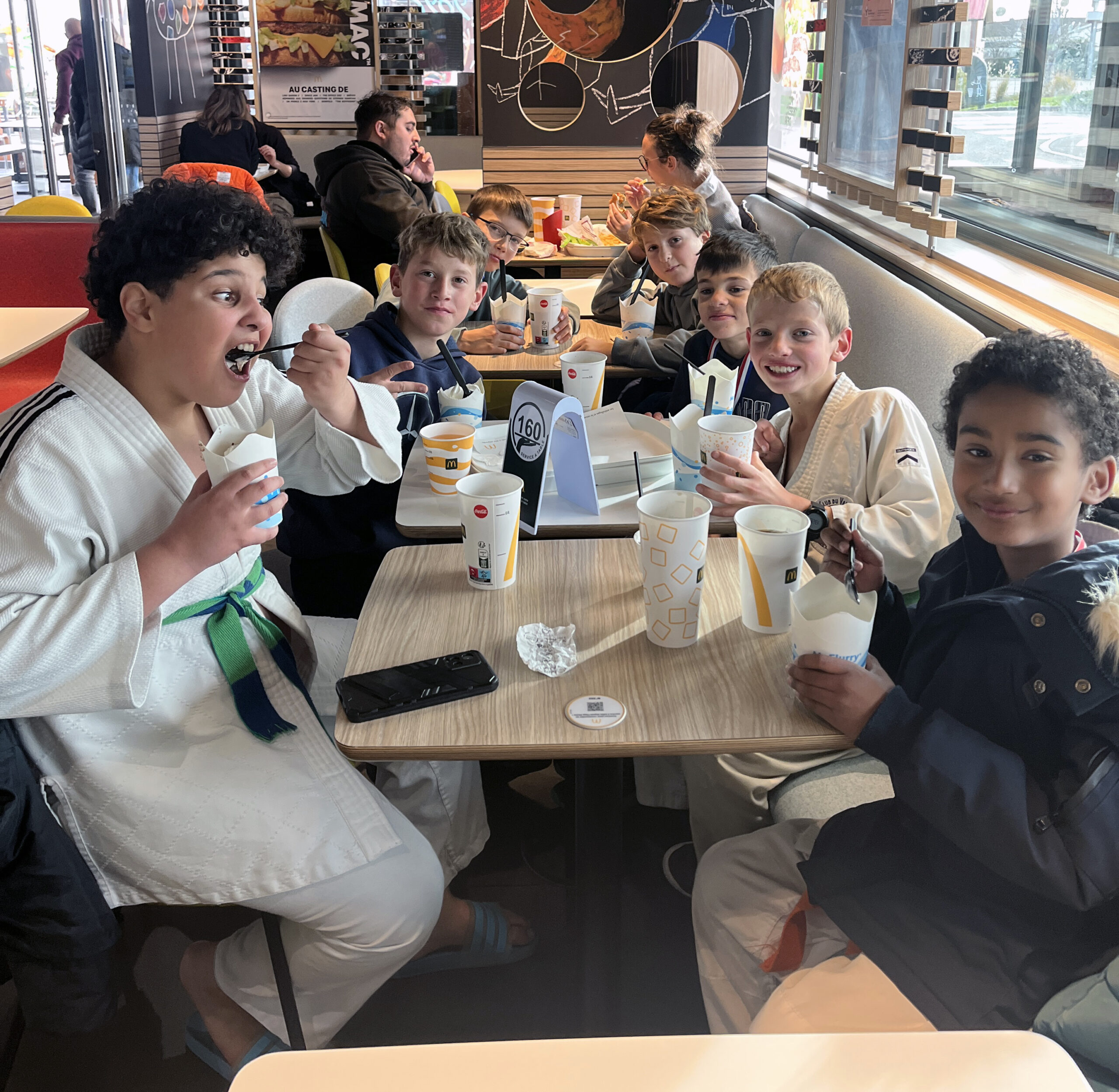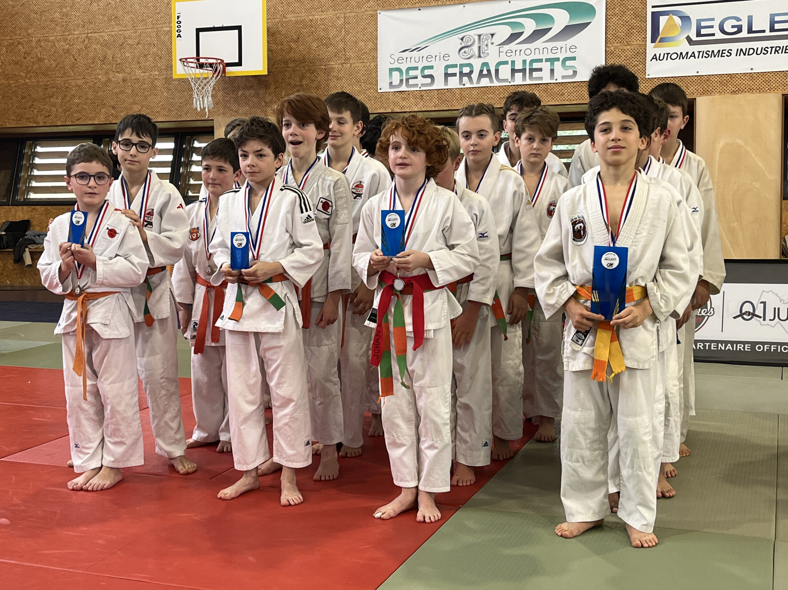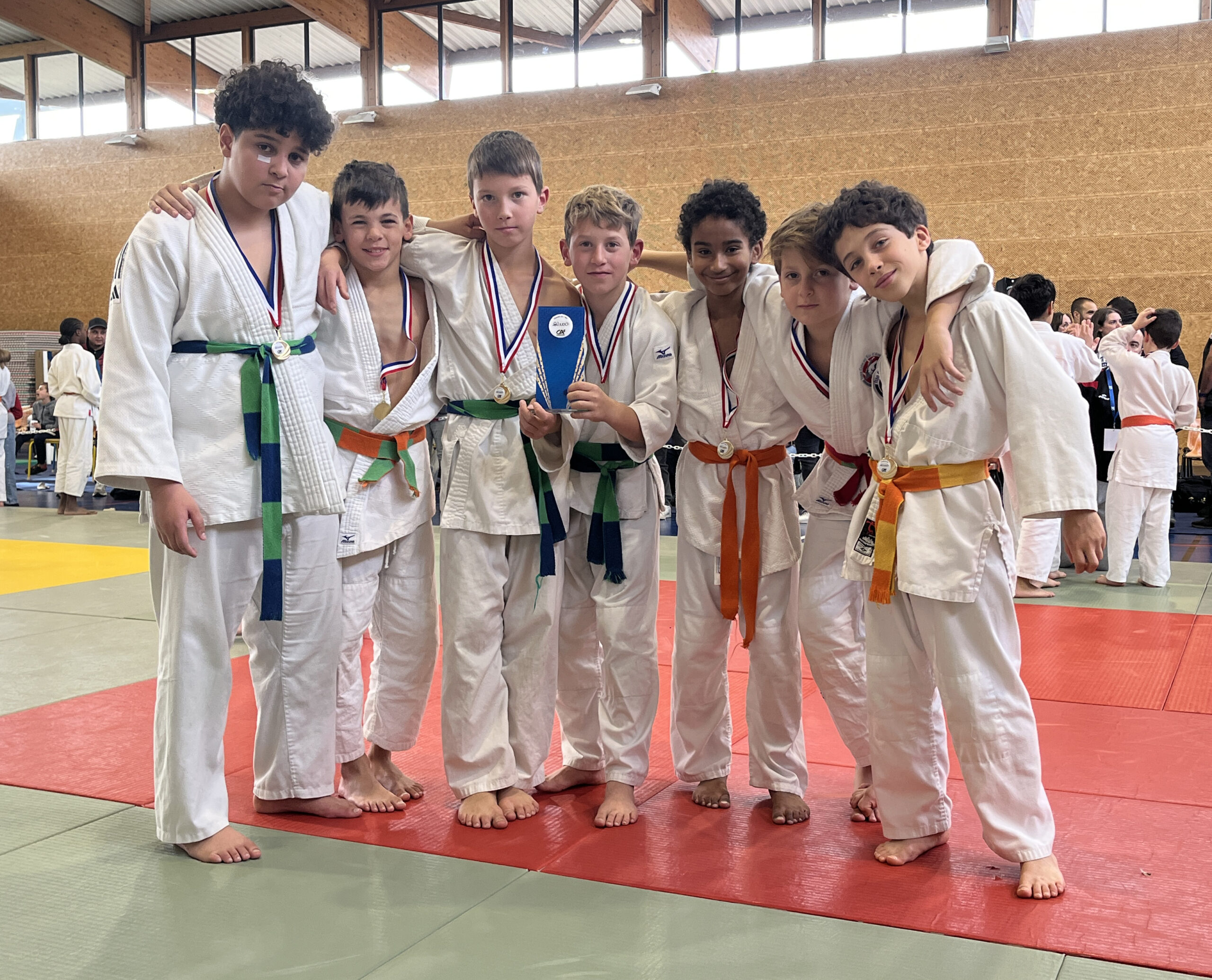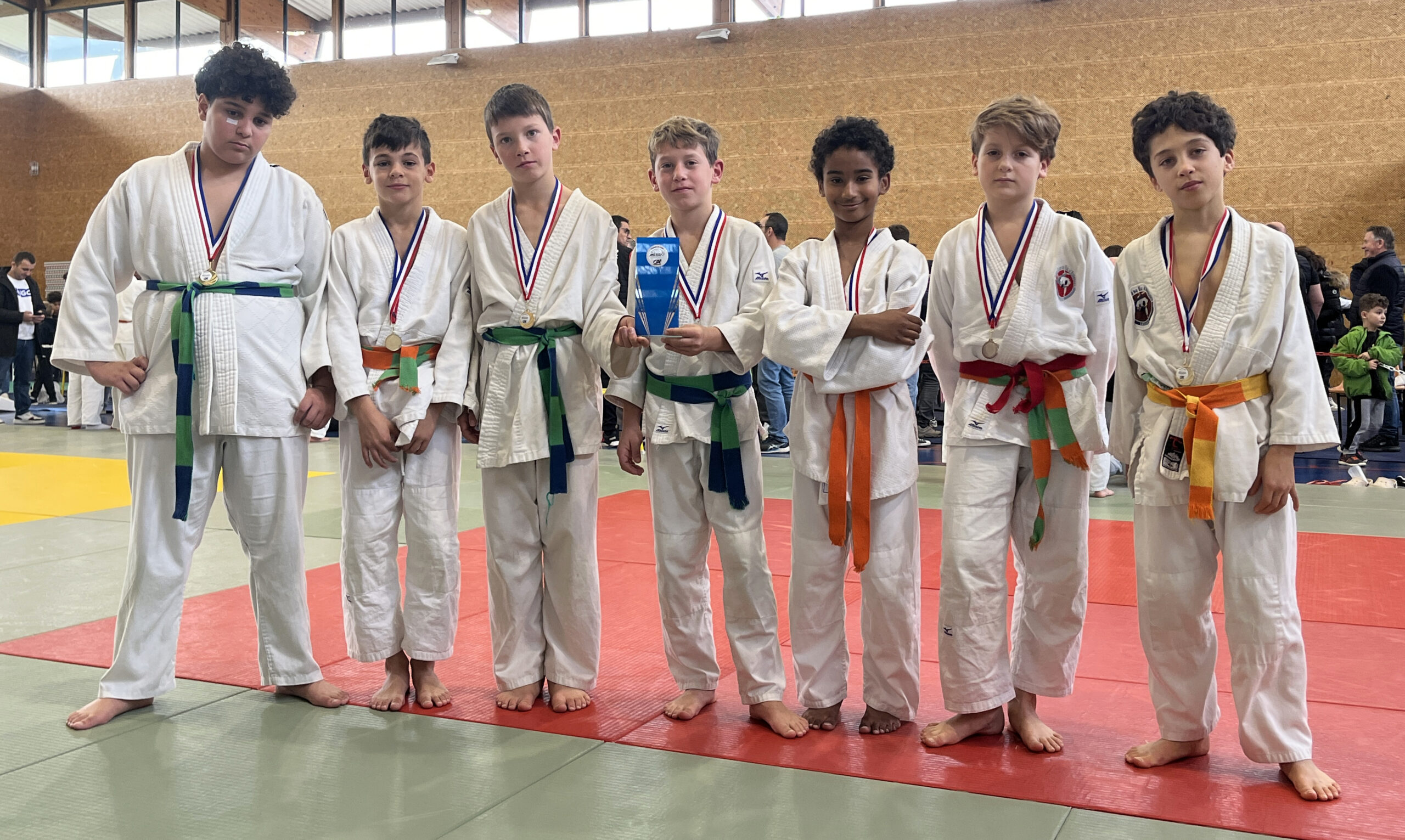 Dans l’équipe poussin il nous a manqué 2 catégories de poids sur 5 . Ils ont donc parti avec un handicap de 2 défaites à chaque tour. Ils sont néanmoins sortis de leur poule de sélection et ont été éliminé en quart de finale. Belle performance !