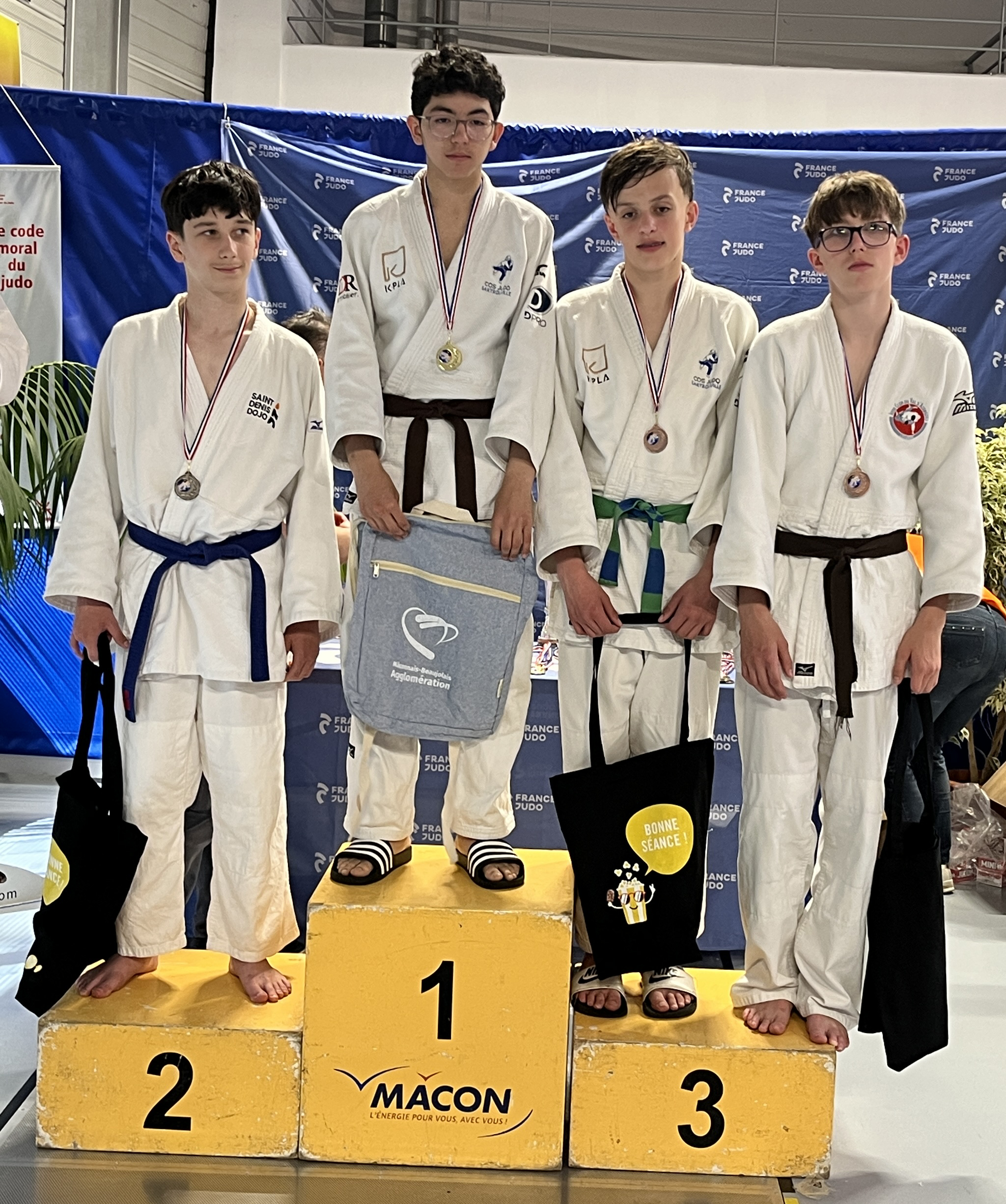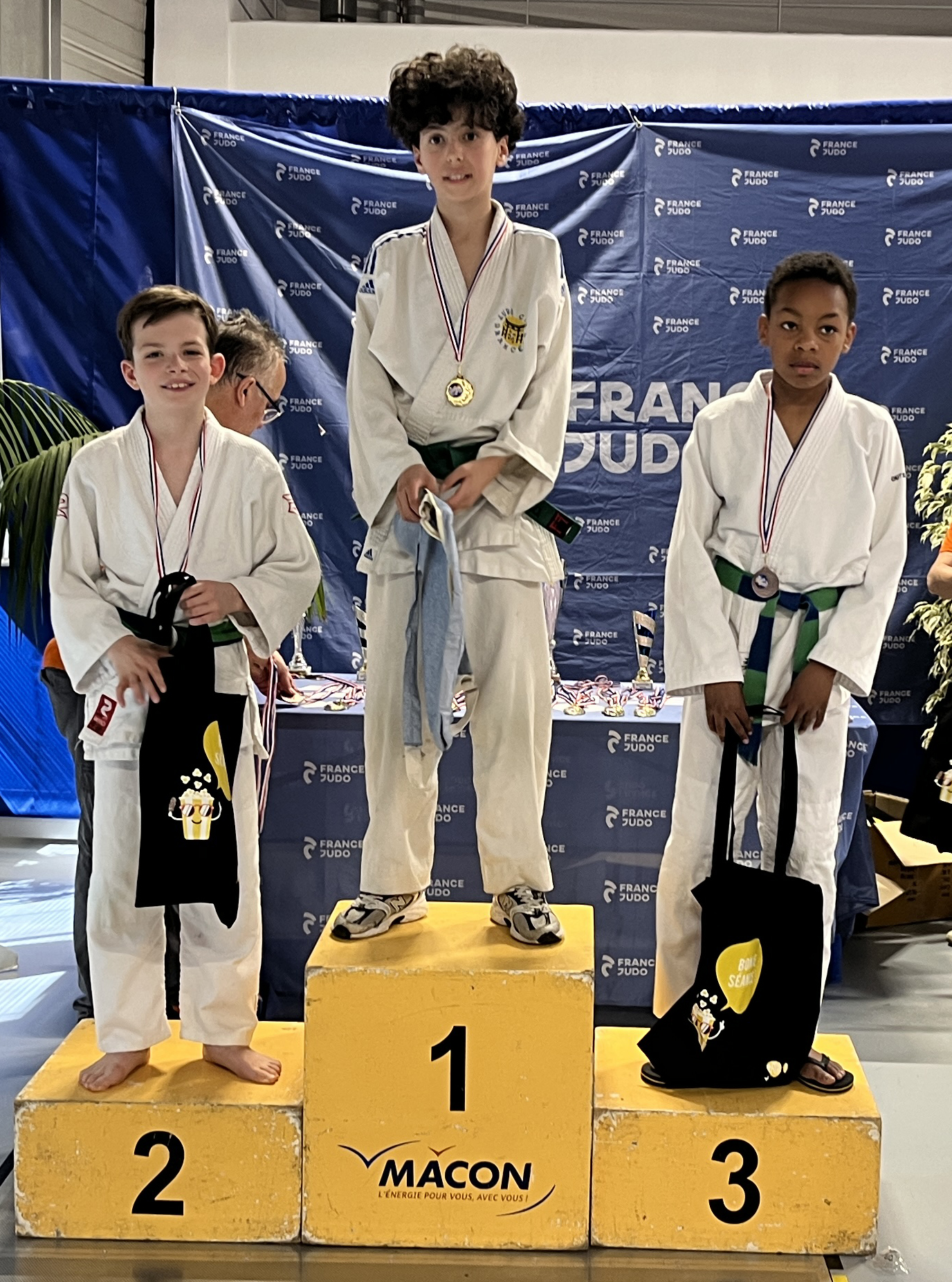 Antonin médaille d’or. Robin médaille d’argent. Ethan médaille de bronze.